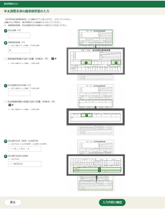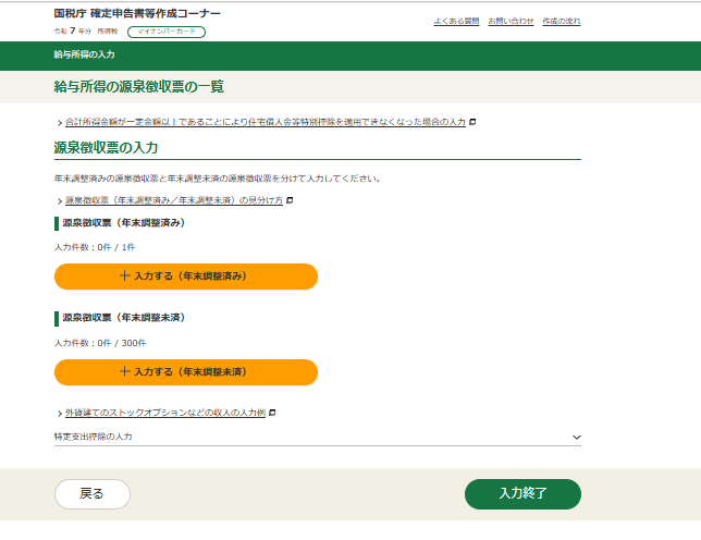 - e-Taxでは年末調整未済の源泉徴収票として入力、源泉徴収税額は0円