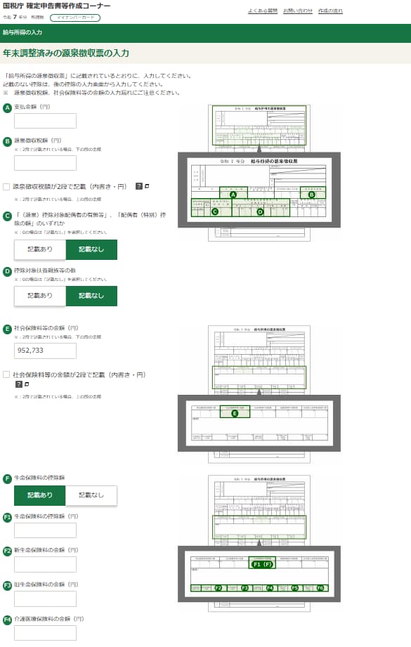 給与所得は源泉徴収票から手入力する必要があります。海外親会社からのRSUは源泉徴収されていない場合が多く、Release Confirmationは日本の税務システムと連携していません。