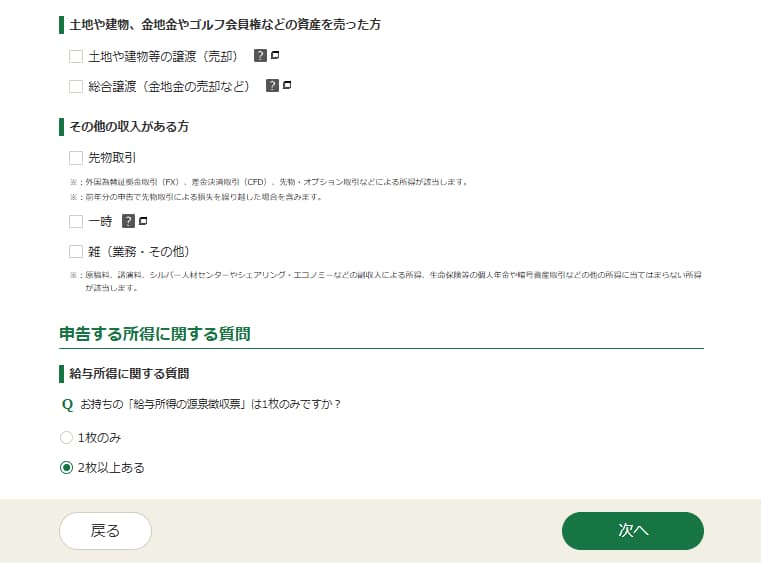 2.「お持ちの給与所得の源泉徴収票は1枚のみですか?」→「2枚以上ある」を選択